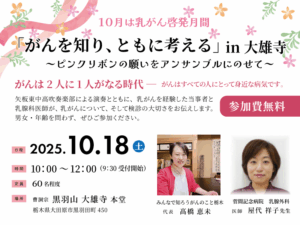 今回の市民公開講座では、栃木県のがん対策チーム担当者、病院の専門看護師、そして当事者団体の代表が登壇し、それぞれの立場から「相談できる場所」や「支援制度」、そして地域でのつながりについてお話しします。